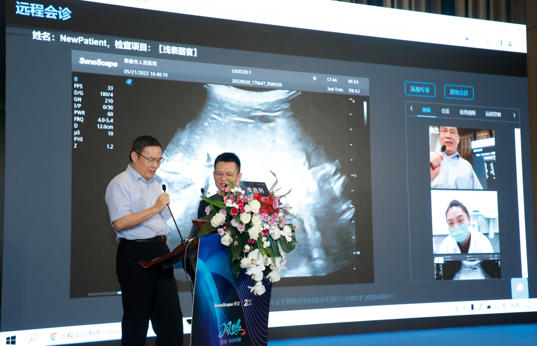 現(xiàn)場還使用開立“云影會(huì)”遠(yuǎn)程會(huì)診系統(tǒng)進(jìn)行了演示,特別邀請李勝利教授對西藏那曲市人民醫(yī)院嘎措主任的產(chǎn)前超聲AI檢查進(jìn)行了遠(yuǎn)程點(diǎn)評(píng)。位于“世界屋脊”的嘎措主任應(yīng)用“鳳眼S-Fetus”功能進(jìn)行了現(xiàn)場超聲掃查,由身在鵬城的李勝利教授對掃查圖像質(zhì)量進(jìn)行了點(diǎn)評(píng)。該環(huán)節(jié)中李教授表示“鳳眼S-Fetus”自動(dòng)抓取的切面圖像質(zhì)量可以對標(biāo)三級(jí)醫(yī)院,給予了嘎措主任極大信心。