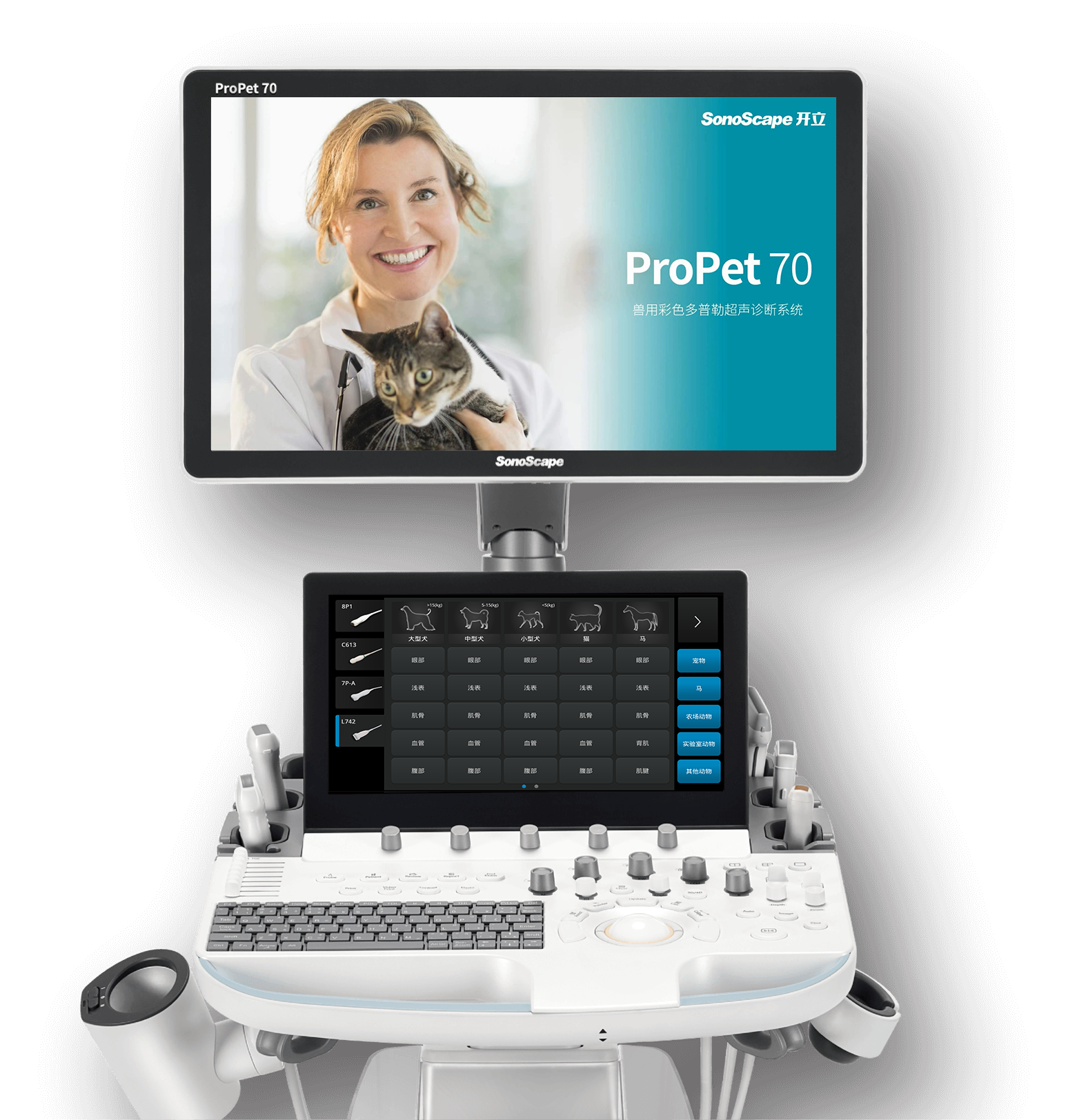 動(dòng)物是人類(lèi)最親密的朋友和最值得信賴(lài)的伙伴。開(kāi)立醫(yī)療也一直致力于探索動(dòng)物專(zhuān)用的超聲影像解決方案。全新推出的ProPet系列,是開(kāi)立在動(dòng)物超聲影像智能化、專(zhuān)業(yè)化、精準(zhǔn)化的一次跨越式革新。動(dòng)物不能用言語(yǔ)來(lái)表述自己的不適,通過(guò)超聲影像,ProPet系列搭建了動(dòng)物醫(yī)生與不同物種溝通的“橋梁”,為動(dòng)物醫(yī)生注入了“治愈之力”。 ProPet 70將是您值得信賴(lài)的超聲伙伴。它配備了復(fù)合材料線陣探頭,幫助動(dòng)物醫(yī)生獲得卓越精準(zhǔn)的臨床圖像。同時(shí)ProPet 70直觀便捷的操作體驗(yàn)以及專(zhuān)業(yè)的測(cè)量工具,可為不同體型和生理結(jié)構(gòu)的動(dòng)物帶來(lái)全面臨床評(píng)估,切實(shí)為動(dòng)物醫(yī)生提供智能、專(zhuān)業(yè)、精準(zhǔn)的超聲影像解決方案。