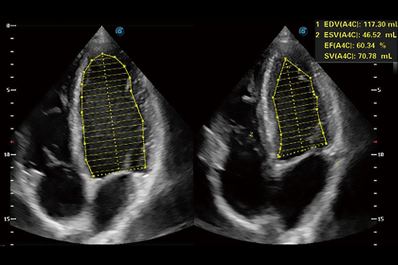 能夠基于左心室壁追蹤和辛普森法,自動(dòng)計(jì)算射血分?jǐn)?shù),支持多個(gè)可移動(dòng)點(diǎn)描跡,與手動(dòng)測(cè)量相比,極大節(jié)省了動(dòng)物醫(yī)生的時(shí)間和精力。