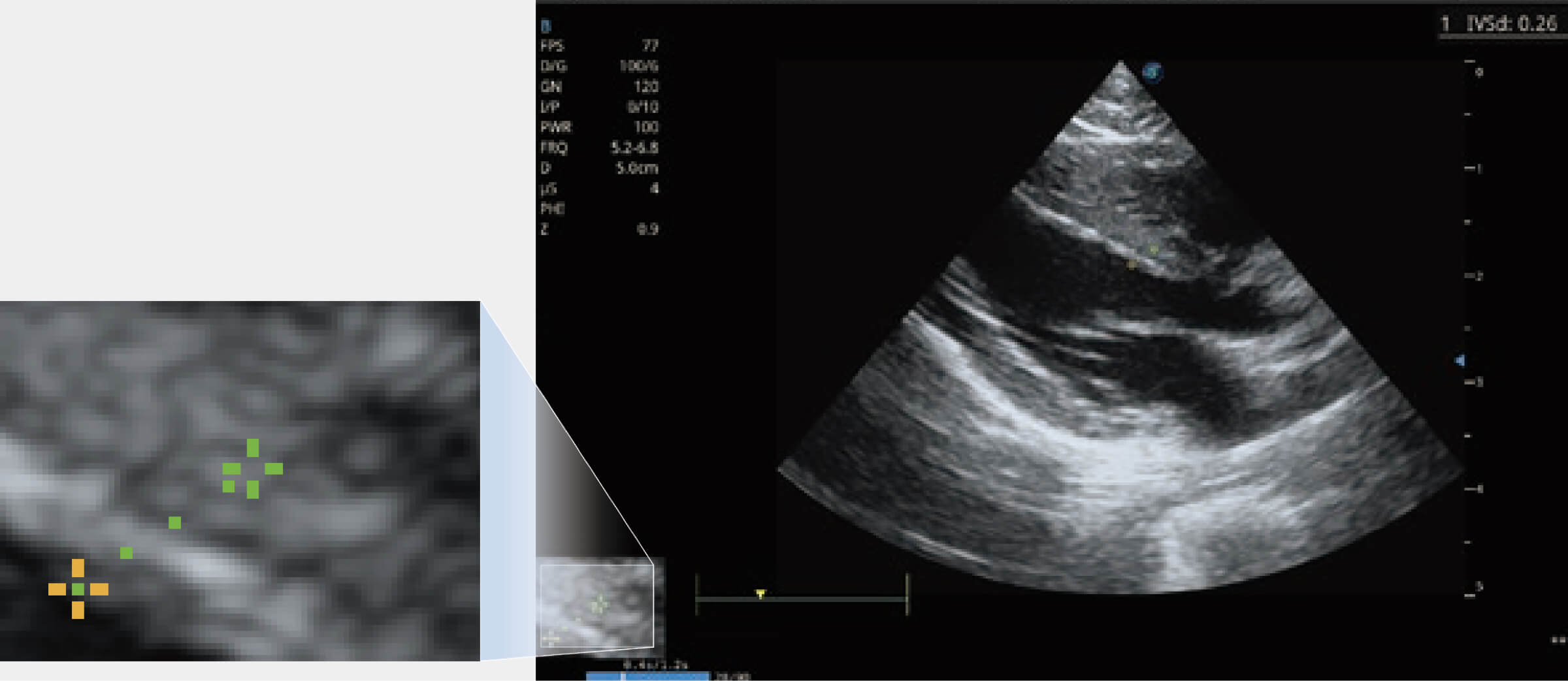 實(shí)時(shí)用顏色表示心肌組織運(yùn)動(dòng),觀察和定量組織的運(yùn)動(dòng)情況,對(duì)快速檢測(cè)與評(píng)估心肌的灌注和活性、電傳導(dǎo)及心肌收縮和舒張功能等均能提供重要的診斷信息。