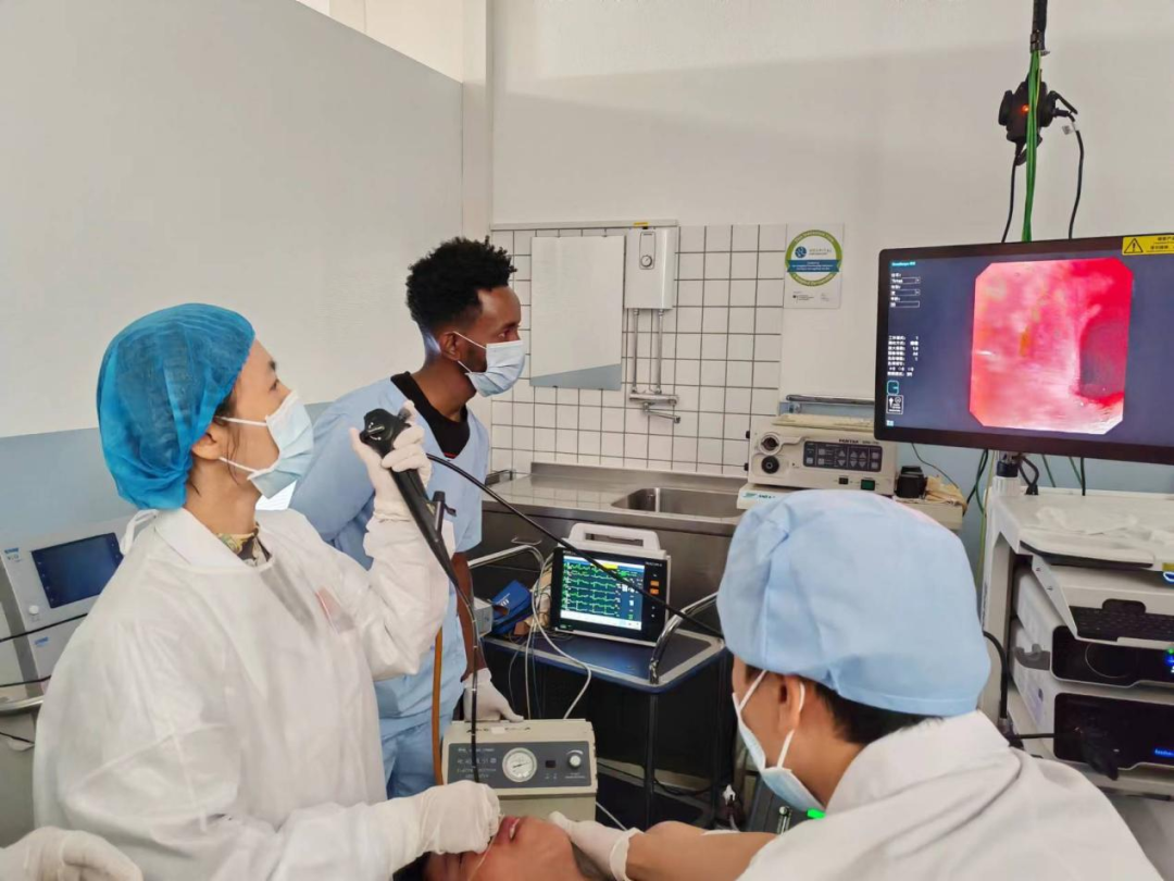 患者薩拉(化名)是第一個在厄立特里亞完成支氣管鏡檢查的病人。因常年咳嗽、間斷發(fā)熱,她曾做過胸部CT及痰培養(yǎng)等檢查,但仍無法明確病因。為了進一步排除相關(guān)疾病,鄭州大學(xué)第二附屬醫(yī)院呼吸內(nèi)科醫(yī)生、第16批中國援厄醫(yī)療隊隊員高崴崴與麻醉醫(yī)生李明振使用開立醫(yī)療的支氣管鏡開展了厄立特里亞首例氣管鏡檢查。