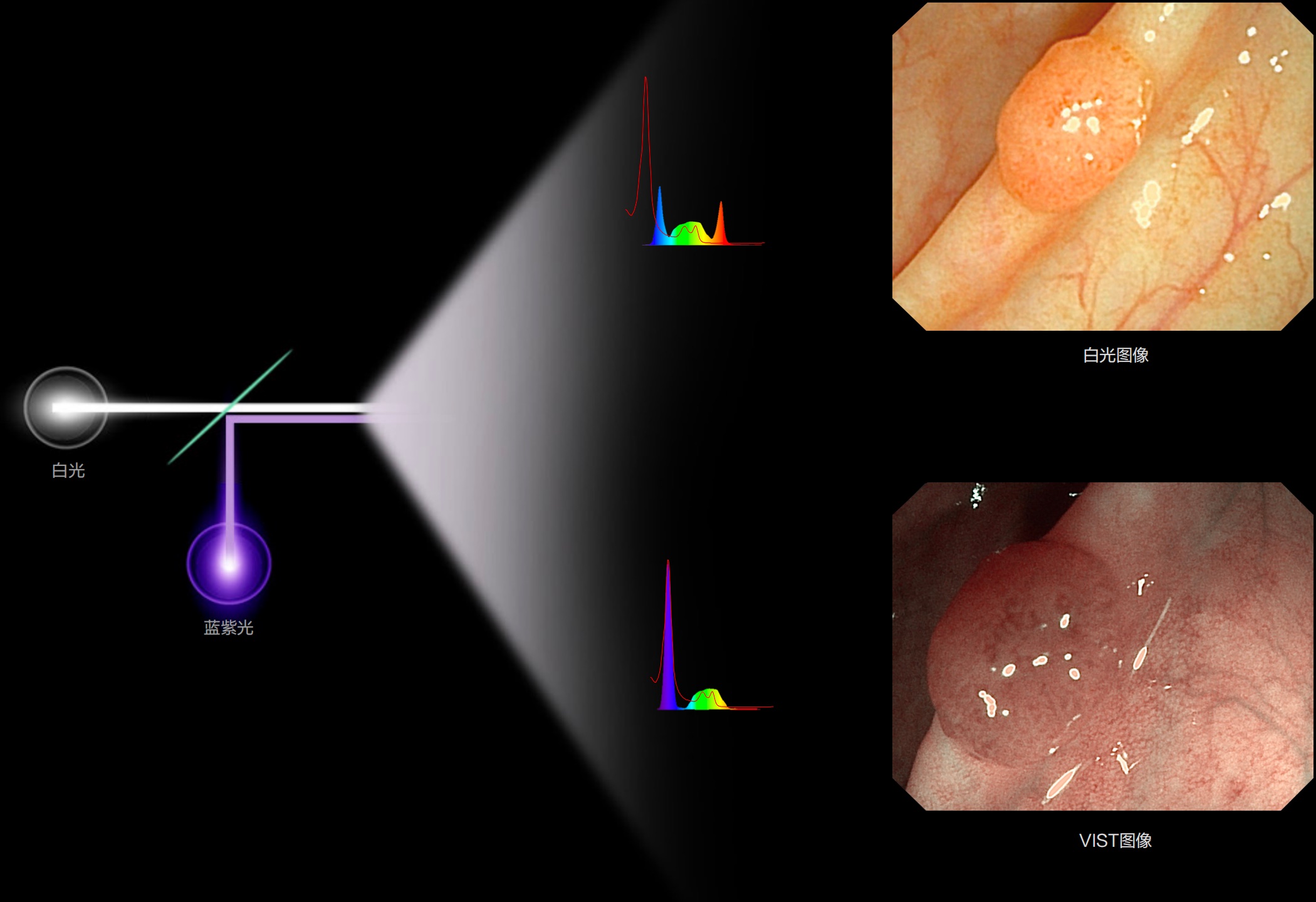 能夠凸顯黏膜淺層和中層血管輪廓,適用于中、遠(yuǎn)景觀察下的病灶識(shí)別和早癌篩查。